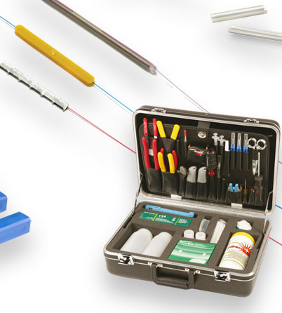 Veliki izbor dodataka za instalaciju optičkih vlakana, uključujući alate za pristup kablovskim vlaknima, komplete alata, film za poliranje, pribor za čišćenje i delove za zamenu za prethodno kupljene komplete alata.